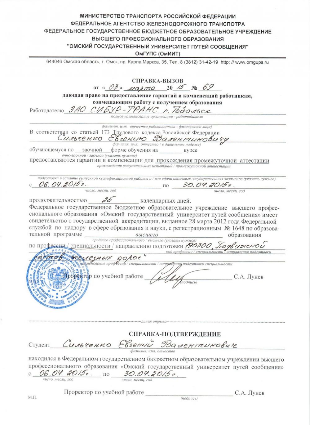 Здравствуйте, мне нужна справка об обучении в вузе. М