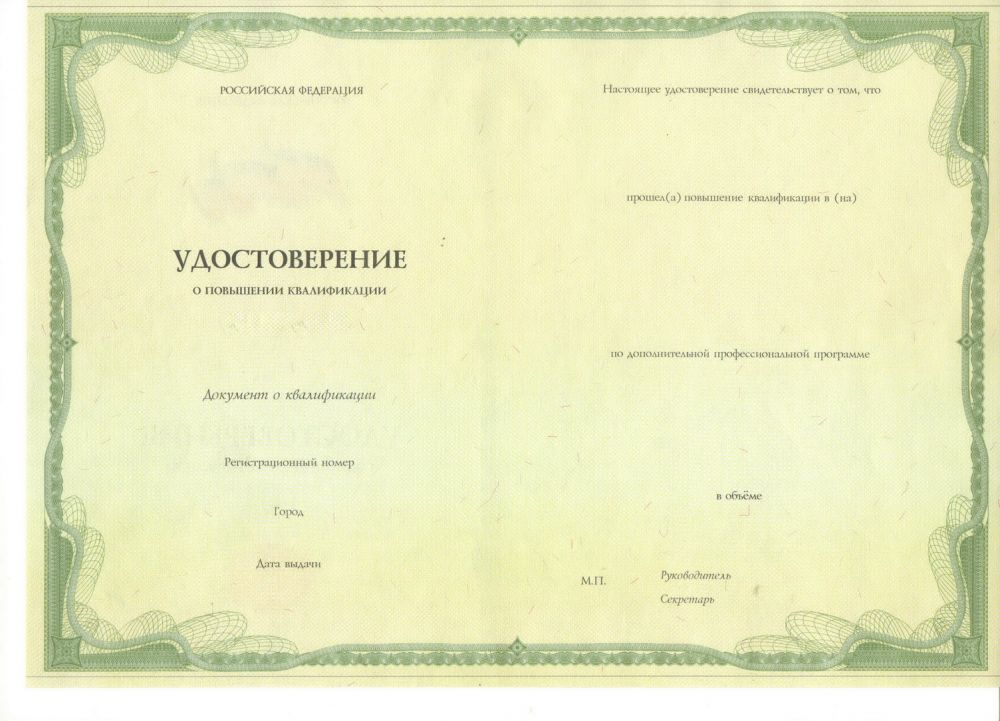 Документ подлежит заполнению черными чернилами. В него вносится информация об обладателе, месте и сроке повышения квалификации. Сокращения и исправления не допускаются.