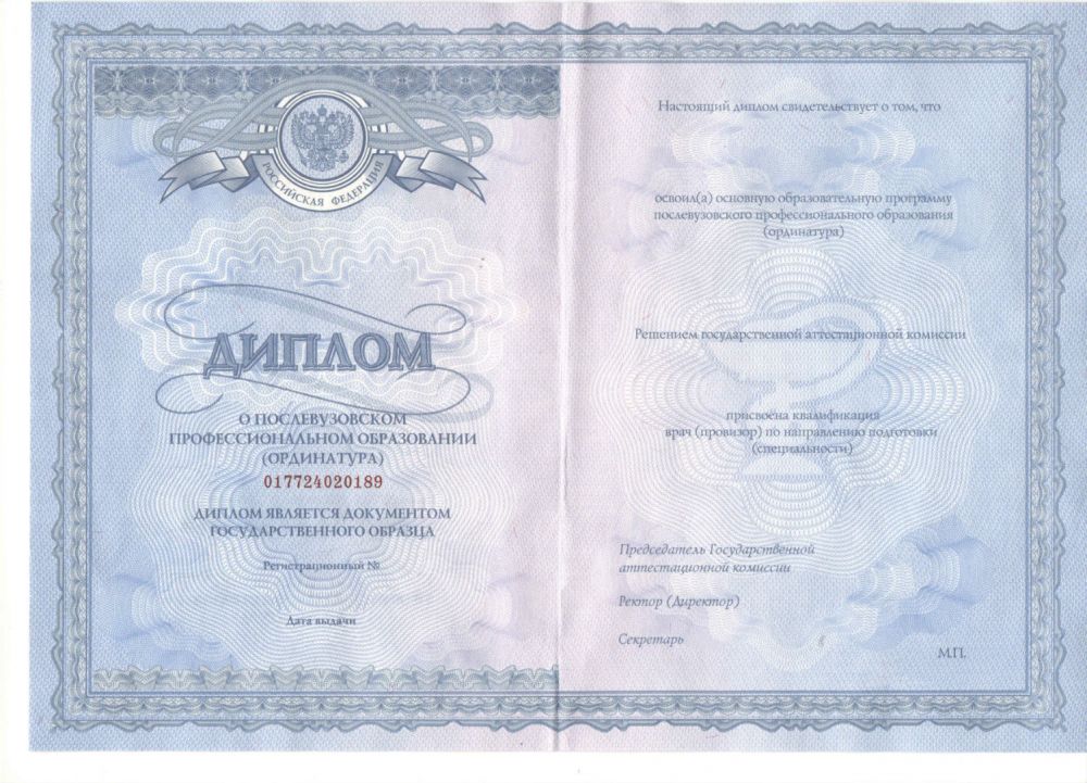 Ординатура – это этап последипломного образования выпускников медицинских высших учебных заведений. Окончившим обучение специалистам выдается удостоверение ординатуры образцов 2005-2012 года, которое является дополнительным документом к диплому о высшем образовании.